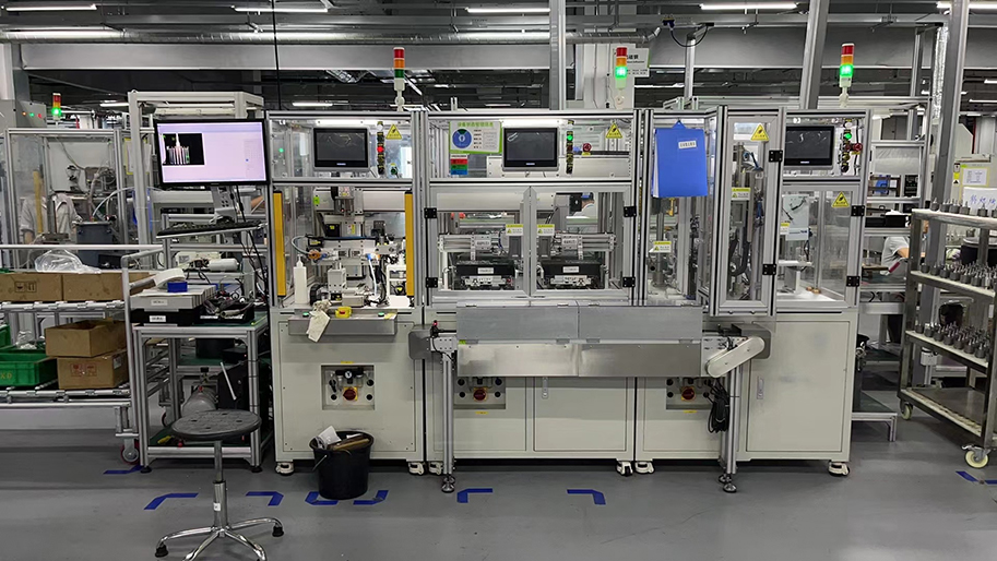 产品上料→设备点胶→CCD检测→ 抓取到贴磁位置→自动贴磁→ 抓取到绕线位置