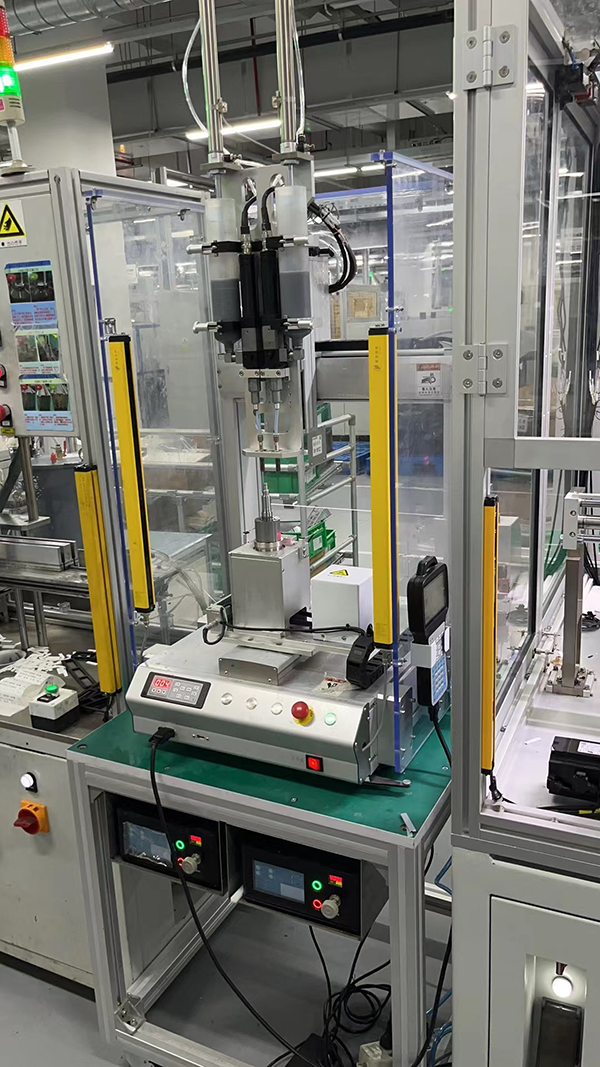 整套设备由人员手动上料 → 点胶 → 点胶后人员手动上料 → 磁钢插入 → 人员下料组成
